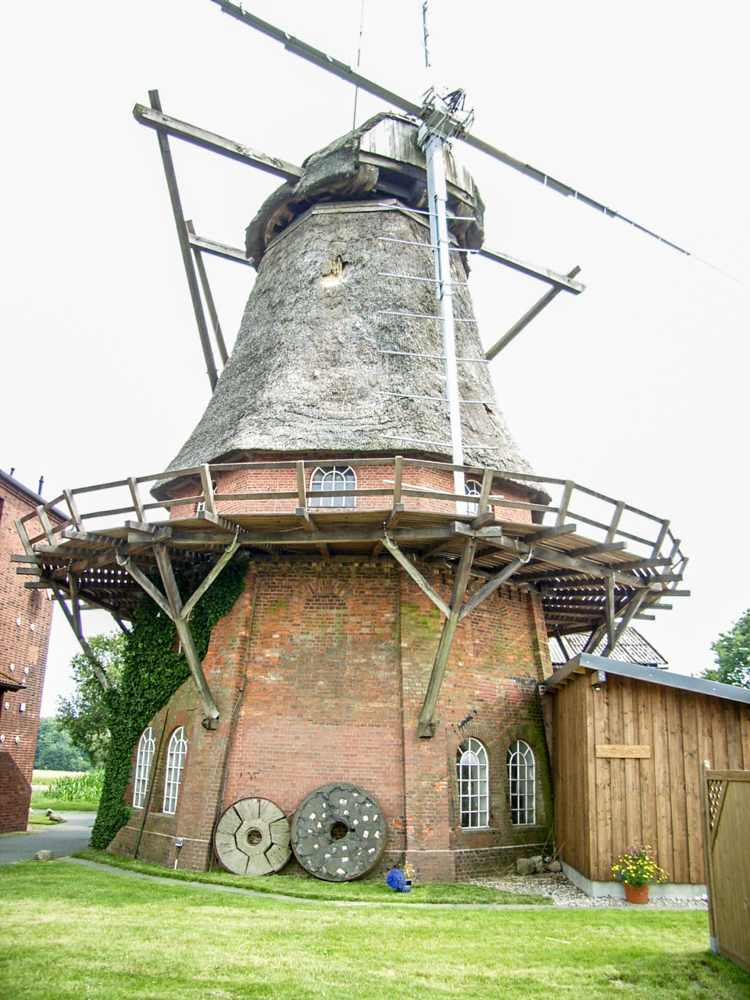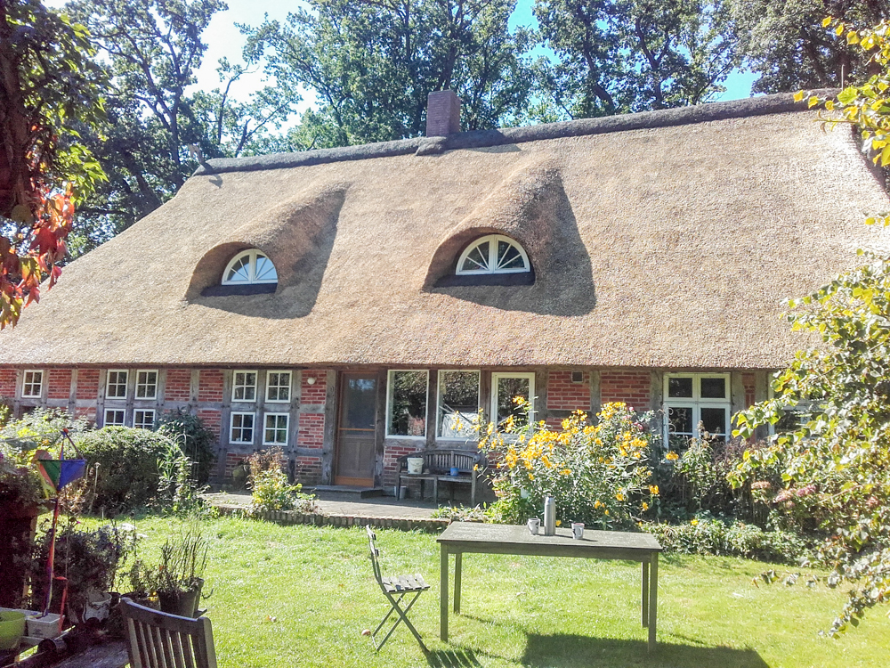 Dabei ist aufgefallen dass die Dächer, die einen Pfannen- oder Plattenfirst haben oder nur einen Kierschoof, in einem wesentlich bessern Zustand waren, als die mit einem Heidefirst. Aber auch Reetdächer mit offenem Uhlenloch waren in einem bessern Zustand.