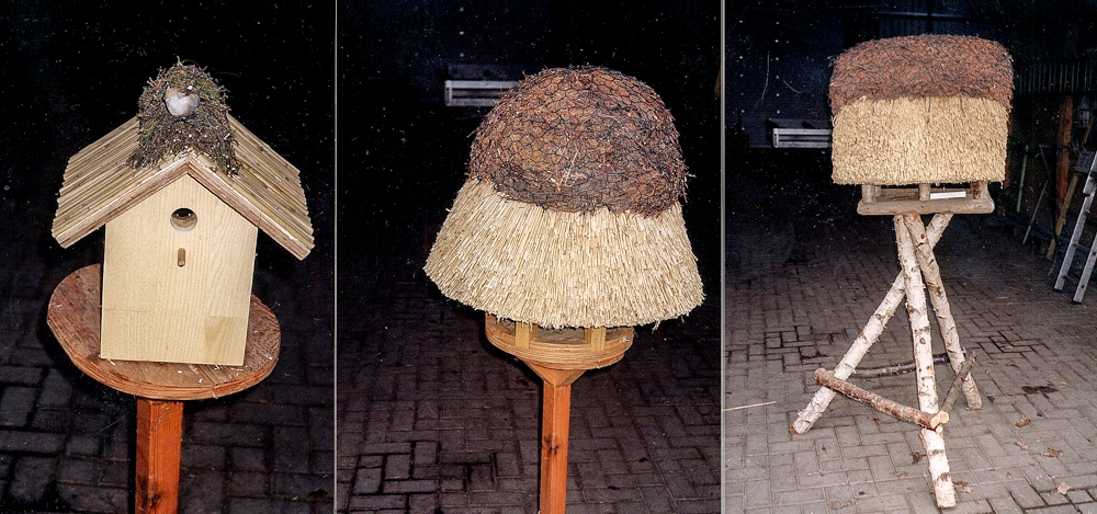 Herbert Ehlert †, der Senior der Firma, fertigte früher Vogelhäuser mit echtem Reetdach an.