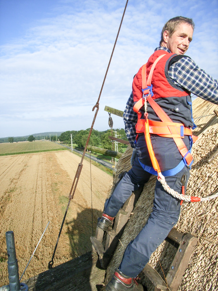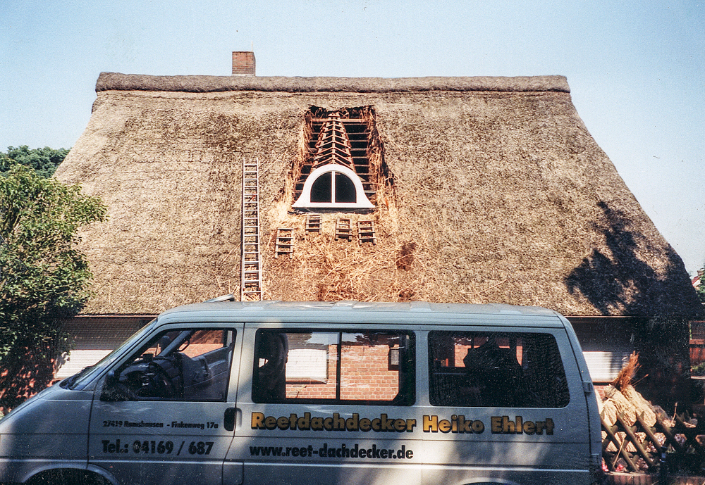 Im August 1986 habe ich dann im Betrieb meines Vaters angefangen. Nach bestandener Prüfung zum Reetdachdecker und einigen Jahren gemeinsamer Arbeit haben wir unsere Reetdachdeckerei langsam aber stetig erweitert und modernisiert.